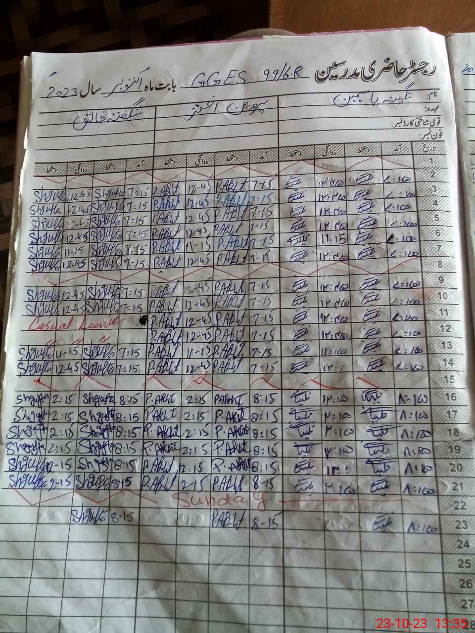 | 31**** | Ma**** Kh**** | 2 | 1 | 0 | 10 | 0 | 0 | 0 | 0 | 0 | 1 | Absent (Un-Authorized) | |