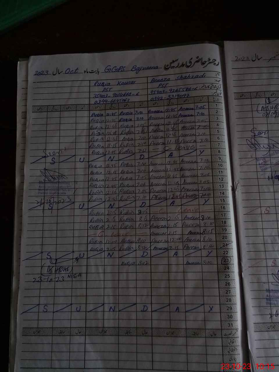 | Name: An**** Designation: (School Headmaster's/Headmistress's) PST Phone/Cell Number: 03**** |