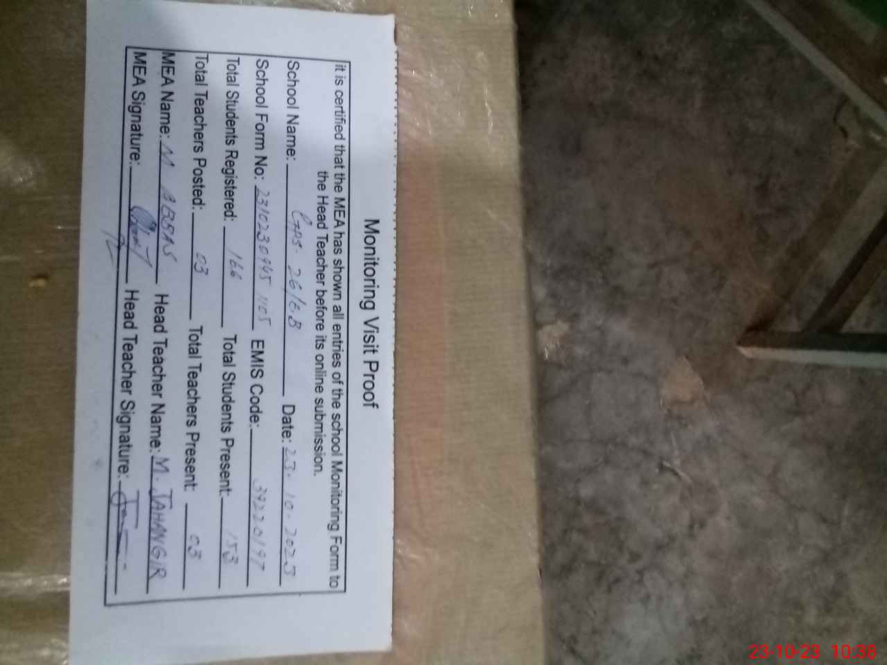 | Certified that this School was Inspected by the Undersigned MEA/DMO Today and the Information Stated Above is as Per Record. | |||||