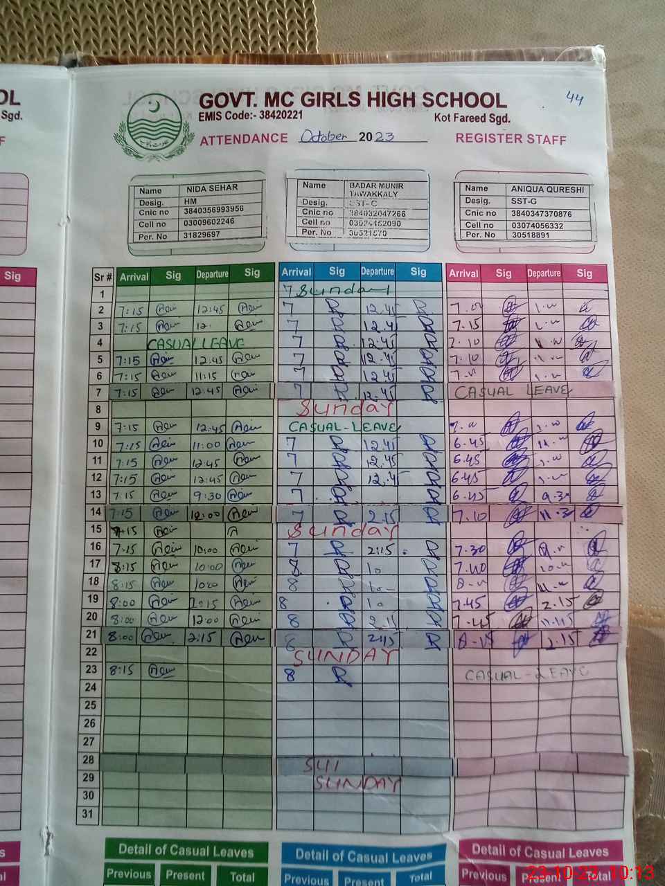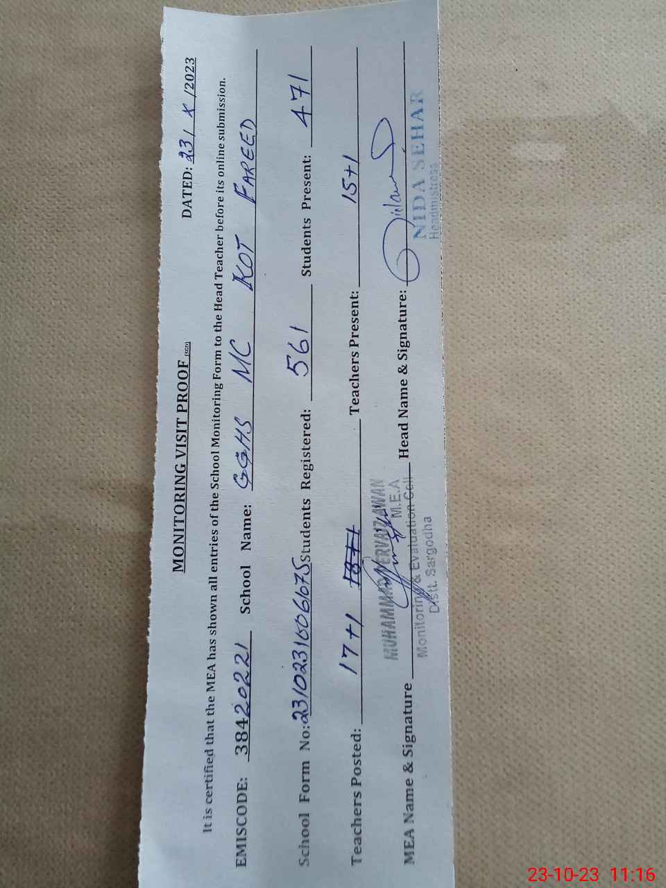 | EMIS Code: 38420221 | Name of School: GGHS MC KOT FAREED | |||