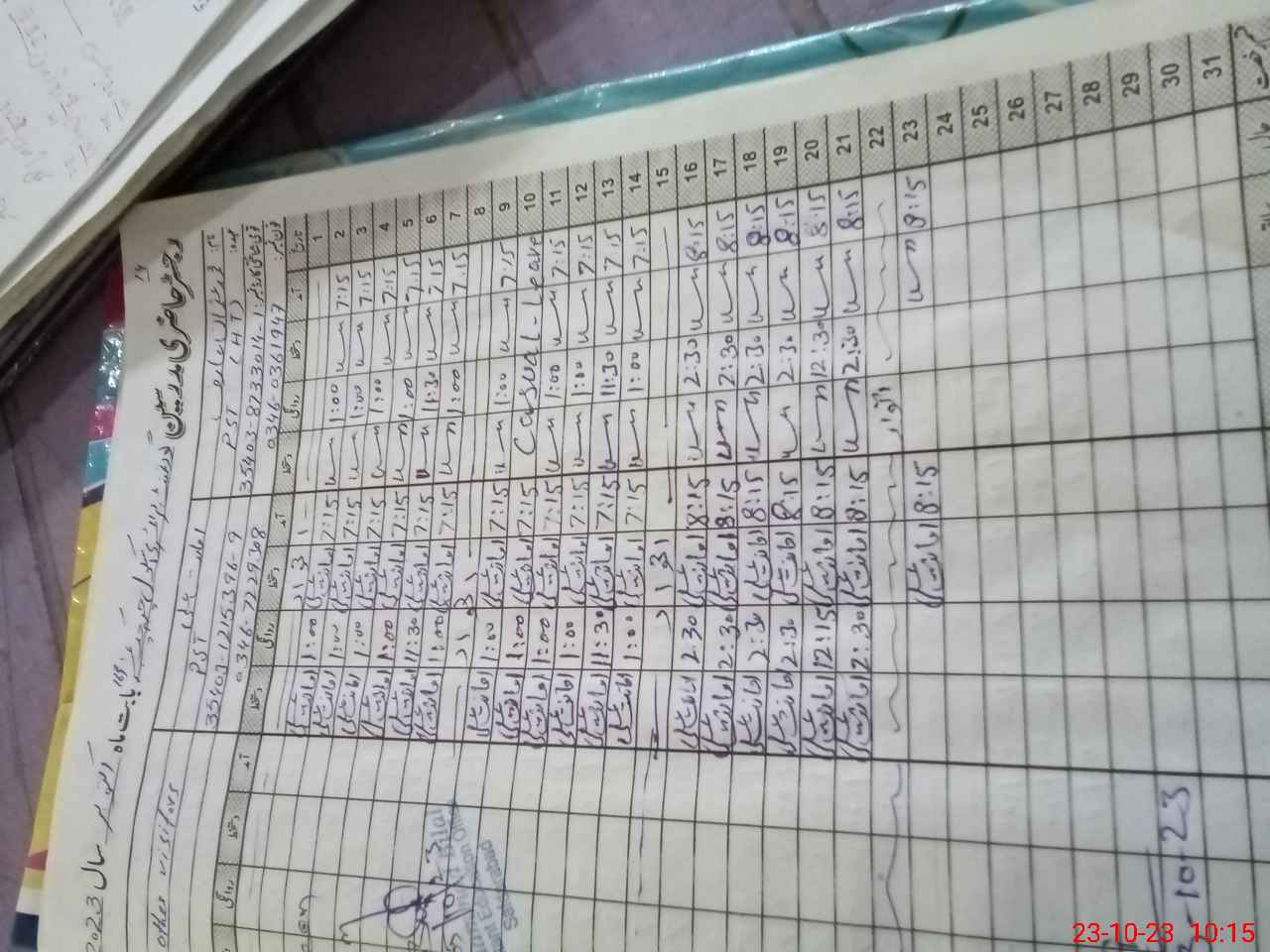 | CNIC | Full Name | Designation | R/C | Absence During Last Calender Month |