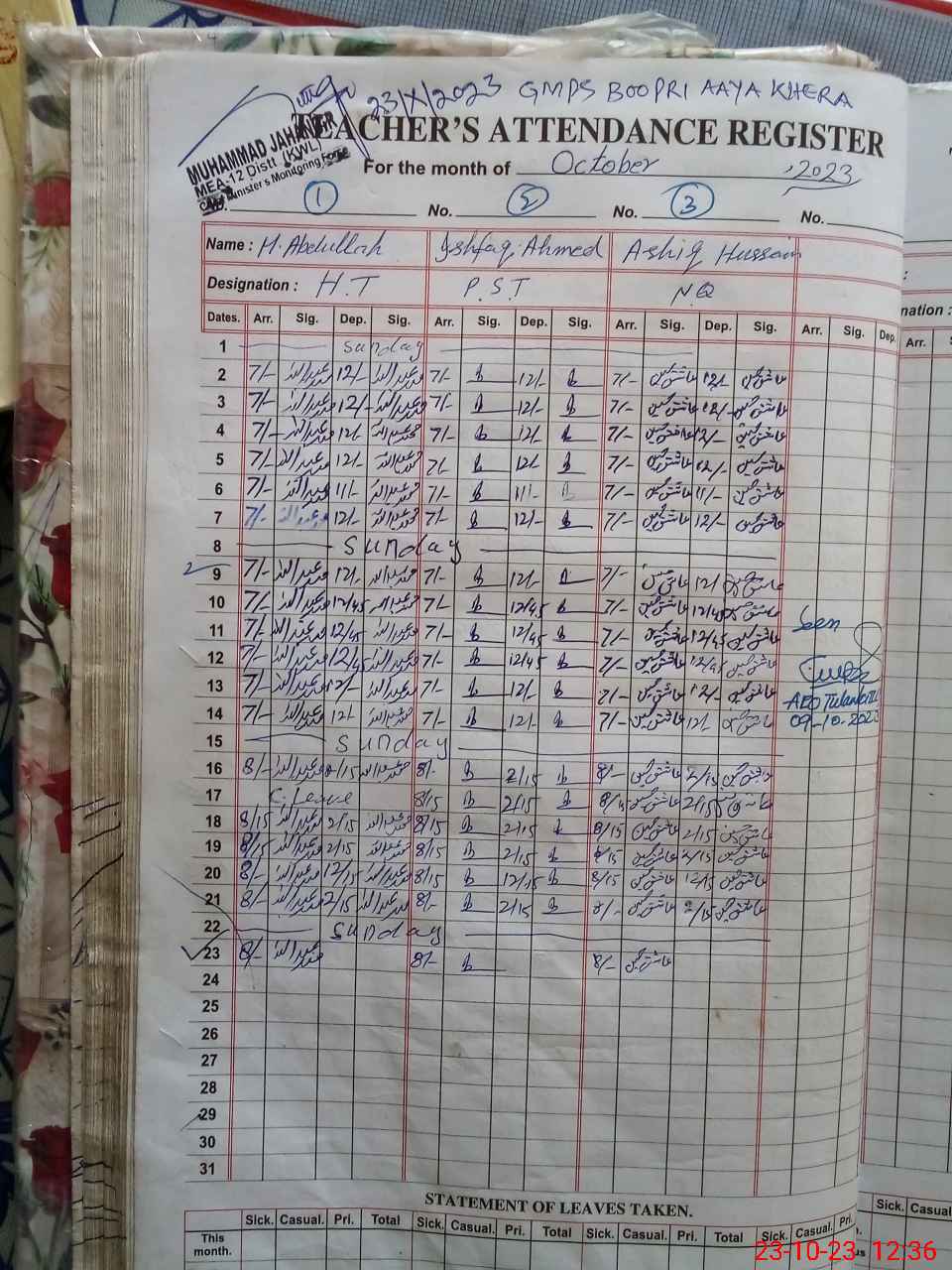 | EMIS Code: 36430400 | Name of School: GMPS BOOPRI AYA KHERA, TULAMBA | |||