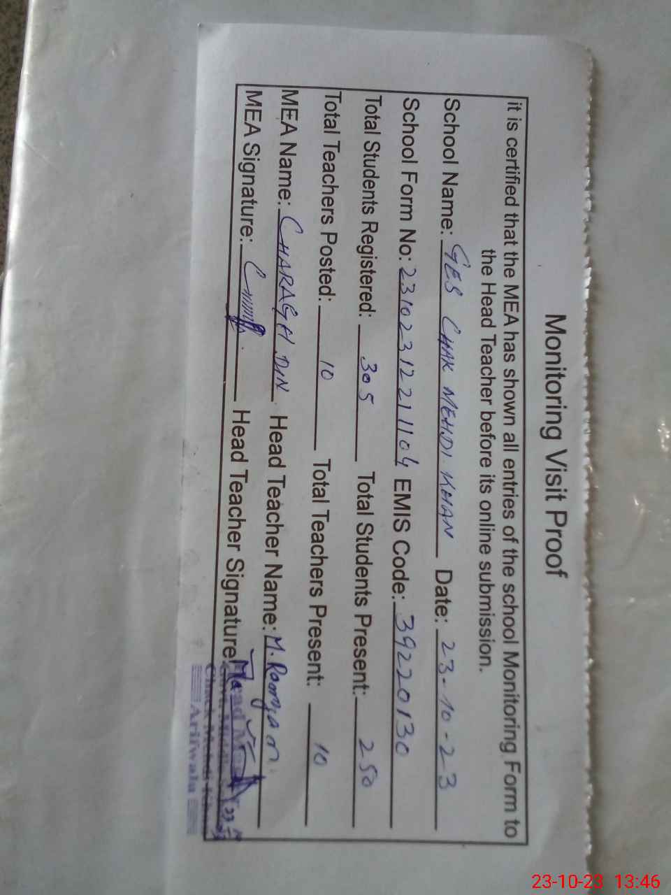 | EMIS Code: 39220130 | Name of School: GES MEHDI KHAN | |||