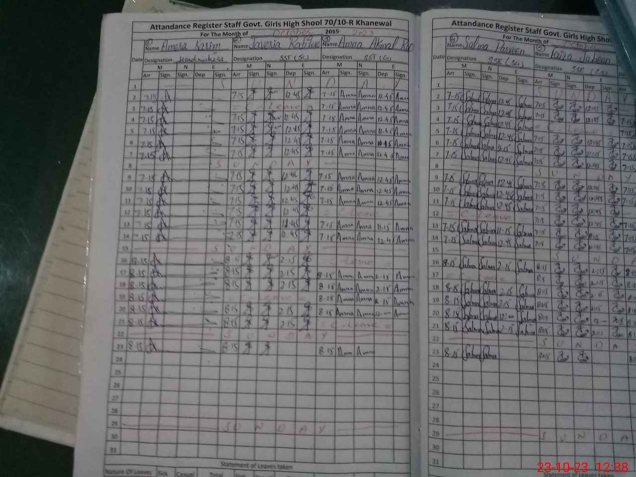 | 36**** | Za**** Bi**** | 3 | 1 | 0 | 0 | 0 | 0 | 0 | 0 | 0 | 0 | 0 | Exam Duty |