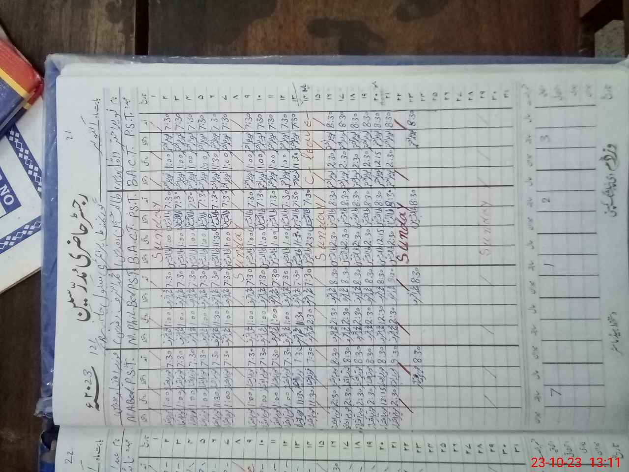| CNIC | Full Name | Designation | R/C | Absence During Last Calender Month |
