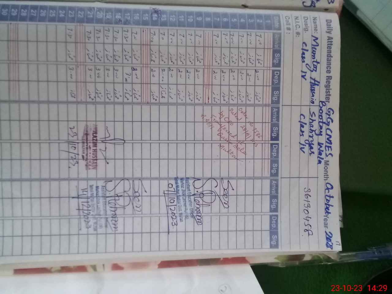 | Name: SA**** NA**** Designation: (School Headmaster's/Headmistress's) Incharge Head SST G Phone/Cell Number: 03**** |