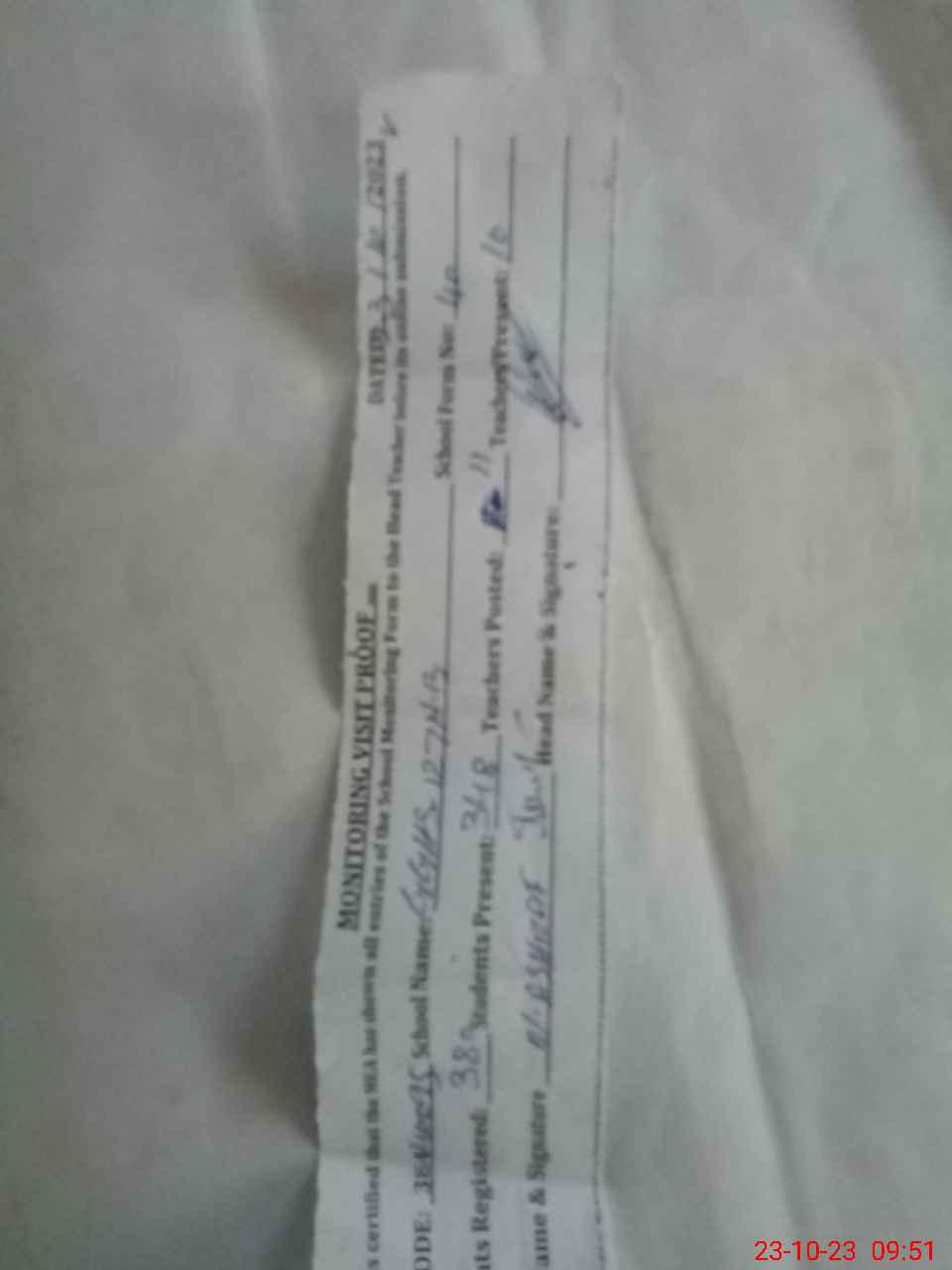 | Name: As**** Sh**** Designation: (School Headmaster's/Headmistress's) SST SCI Phone/Cell Number: 03**** |