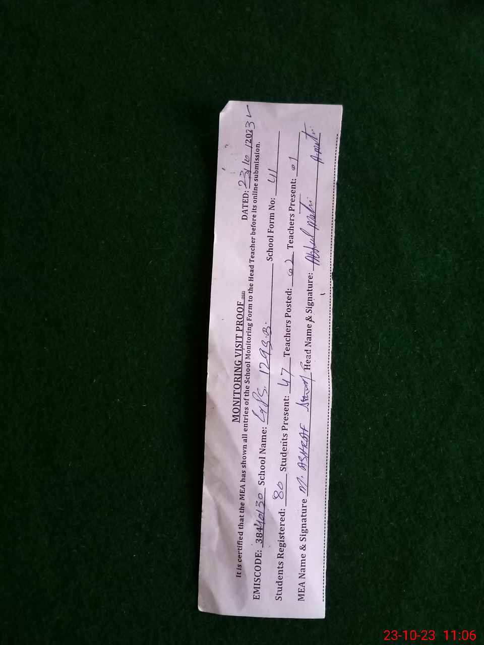 | Certified that this School was Inspected by the Undersigned MEA/DMO Today and the Information Stated Above is as Per Record. | |||||