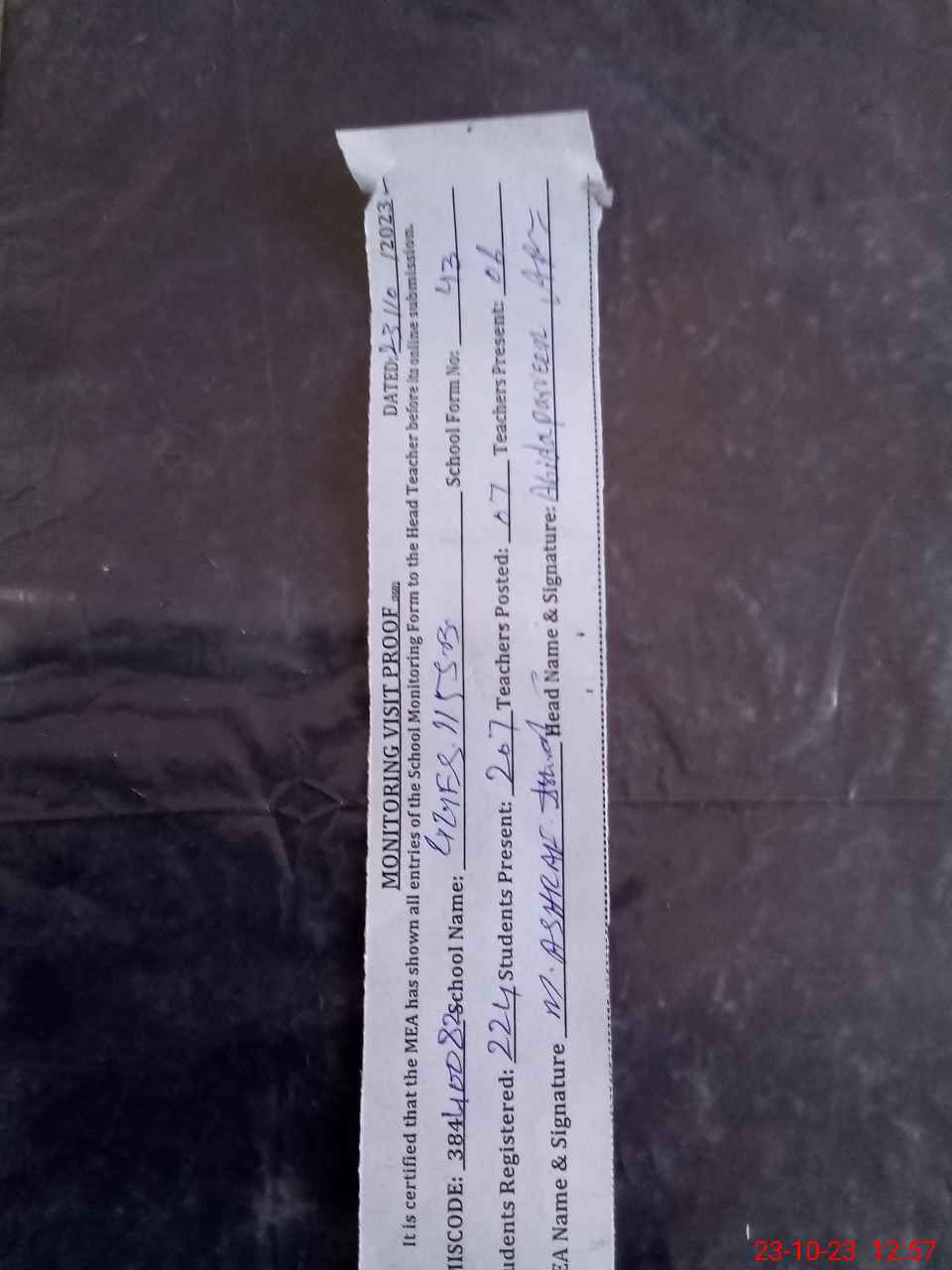 | Name: Ab**** Pa**** Designation: (School Headmaster's/Headmistress's) EST G Phone/Cell Number: 03**** |