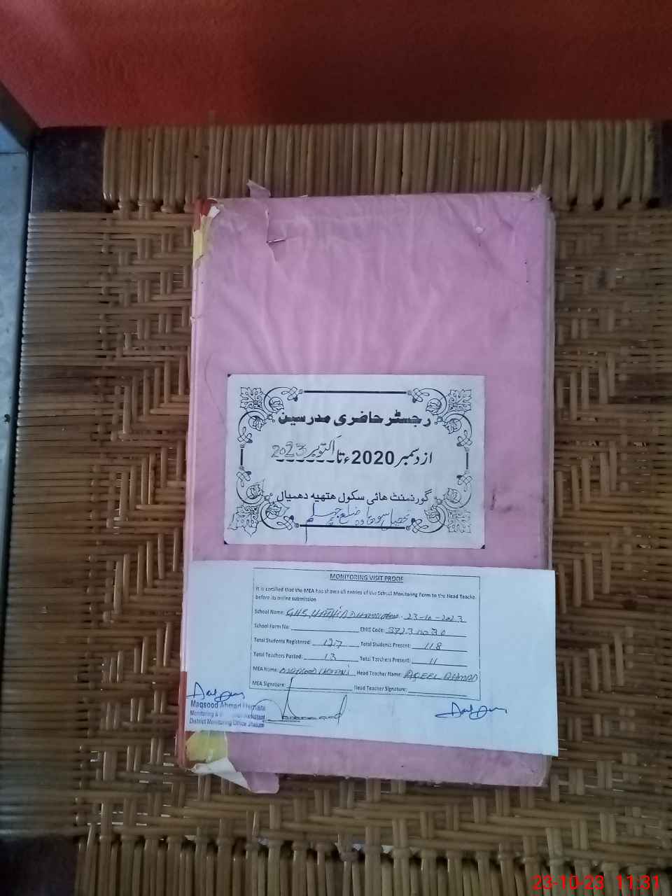 | EMIS Code: 37230030 | Name of School: GHS HATHIA DHAMIAL | |||