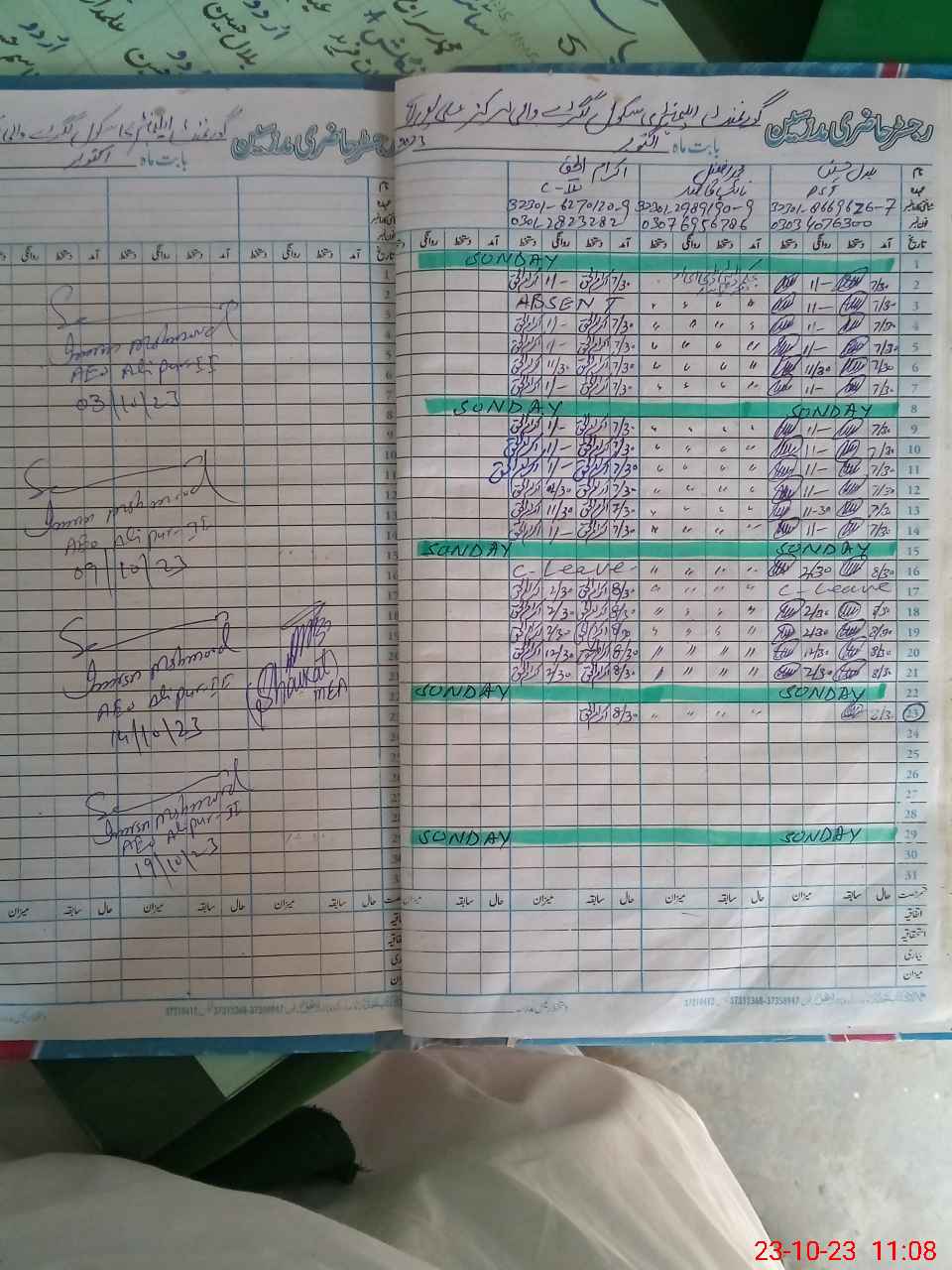 | CNIC | Full Name | Designation | R/C | Absence During Last Calender Month |