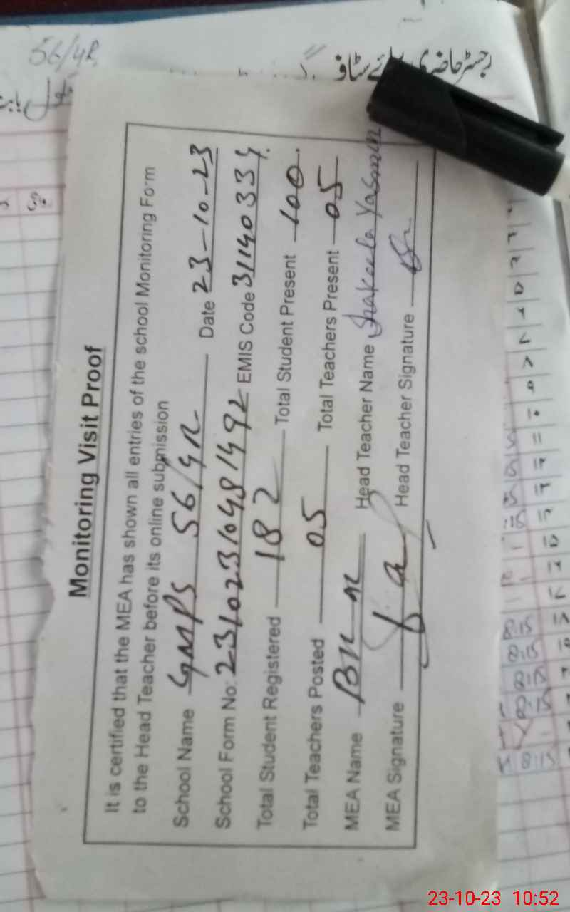 | EMIS Code: 31140334 | Name of School: GMPS CHAK NO. 56/4-R | |||