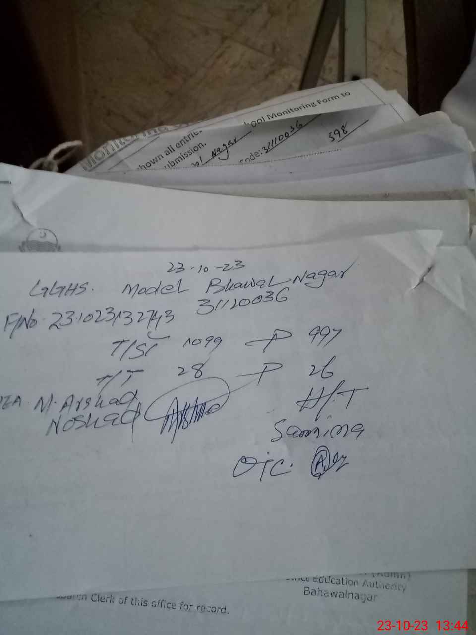 | District: BAHAWALNAGAR | Tehsil: BAHAWALNAGAR | Markaz: SECONDARY-WING | Level: High | |