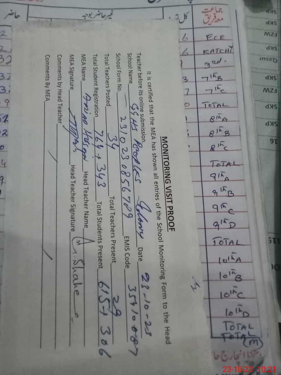 | EMIS Code: 35410087 | Name of School: GGHS PEOPLES COLONY FEROZWALA | |||
