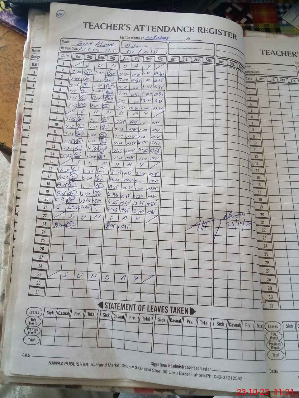 | Name: SH**** Designation: (School Headmaster's/Headmistress's) PST Phone/Cell Number: 03**** |