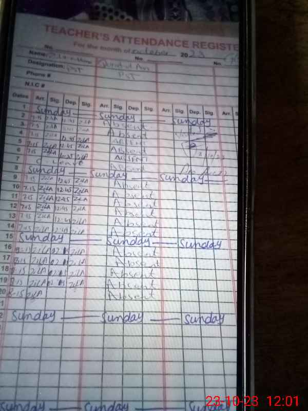 | Name: BA**** AS**** Designation: (School Headmaster's/Headmistress's) PST Phone/Cell Number: 03**** |
