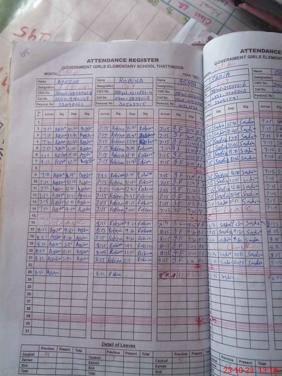 | CNIC | Full Name | Designation | R/C | Absence During Last Calender Month |