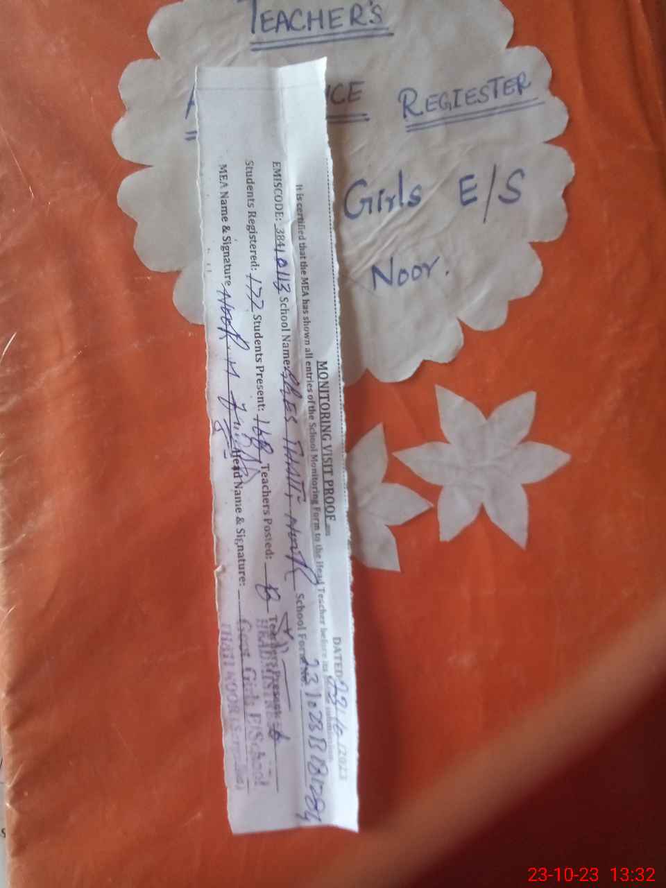 | Attendance Register | Head Teacher | MEA with School | Visit Proof |