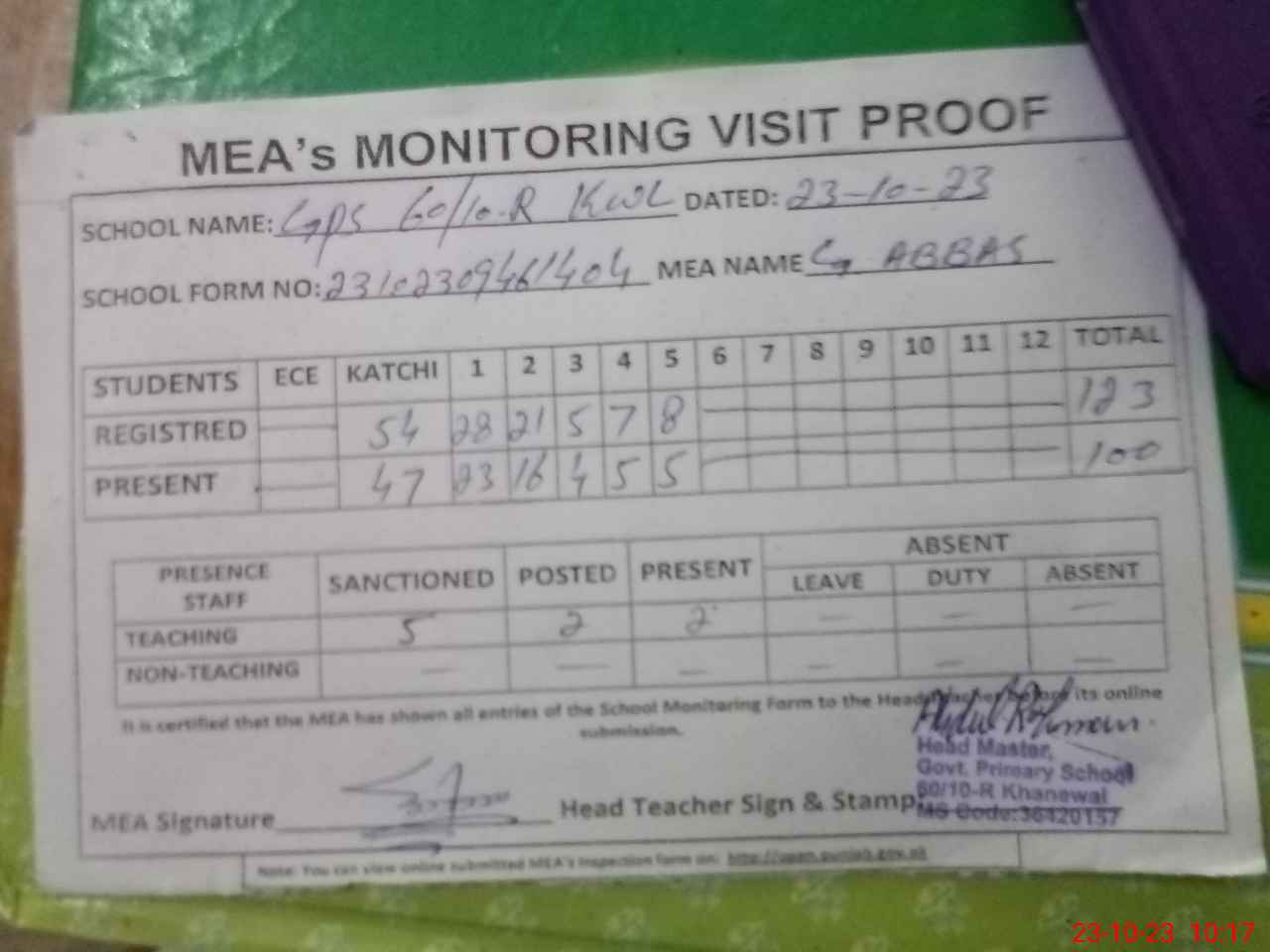 | EMIS Code: 36420157 | Name of School: GPS 60/10-R, KHANEWAL | |||