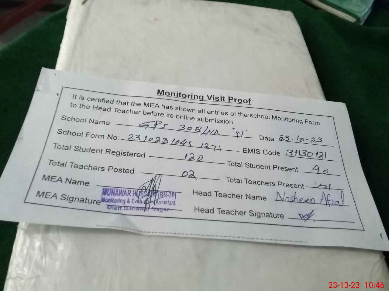 | EMIS Code: 31130121 | Name of School: GPS CHAK 308/HR NORTH | |||