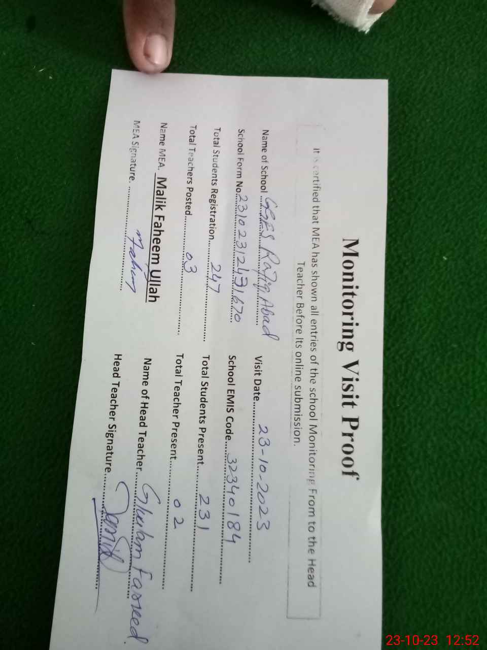 | Name: Ar**** Ra**** Designation: (School Headmaster's/Headmistress's) PST Phone/Cell Number: 03**** |