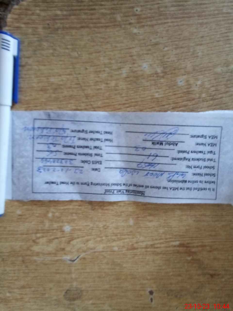 | Monitoring Date: 23-10-2023 | Start Time: 23-10-2023 10:03 AM | End Time: 23-10-2023 10:44 AM | Name of MEA: AB**** MA**** | |