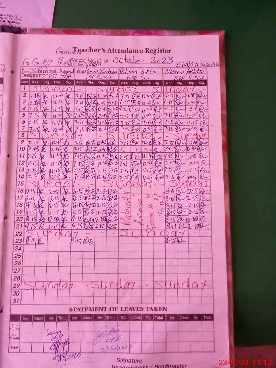 | 32**** | Fa**** Al**** | 1 | 1 | 0 | 0 | 0 | 0 | 0 | 0 | 0 | 0 | 0 | Maternity |