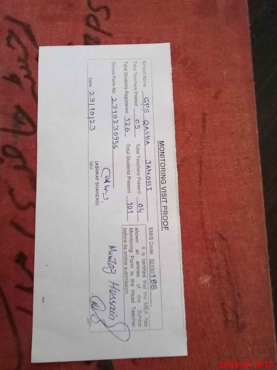 | EMIS Code: 32330188 | Name of School: GPS QASBA JUNOBI | |||