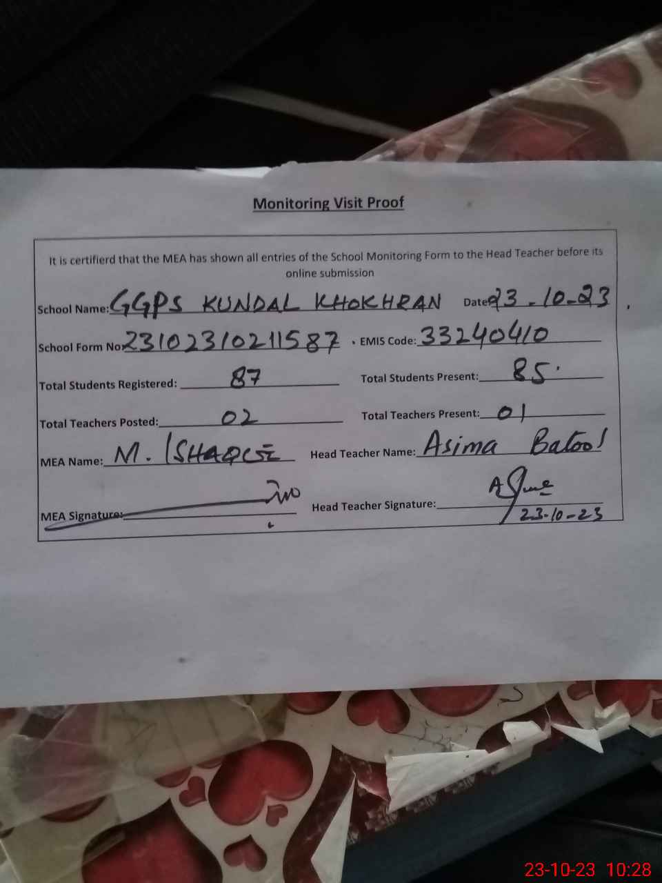 | EMIS Code: 33240410 | Name of School: GGPS KONDAL KHAOKRAN | |||