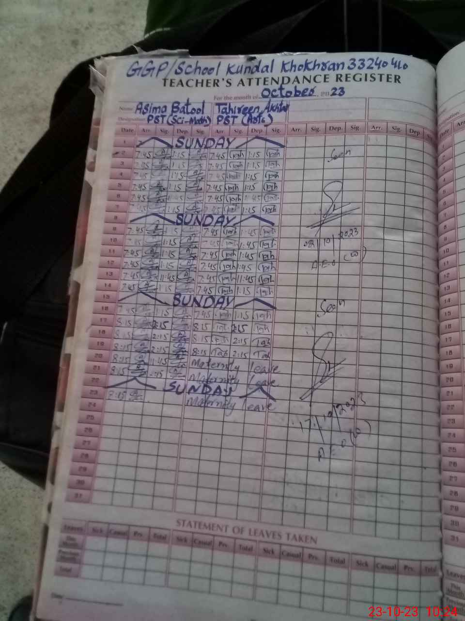 | 33**** | Ta**** Ak**** | 1 | 0 | 0 | 0 | 0 | 0 | 0 | 0 | 0 | 0 | Absent (Un-Authorized) | |