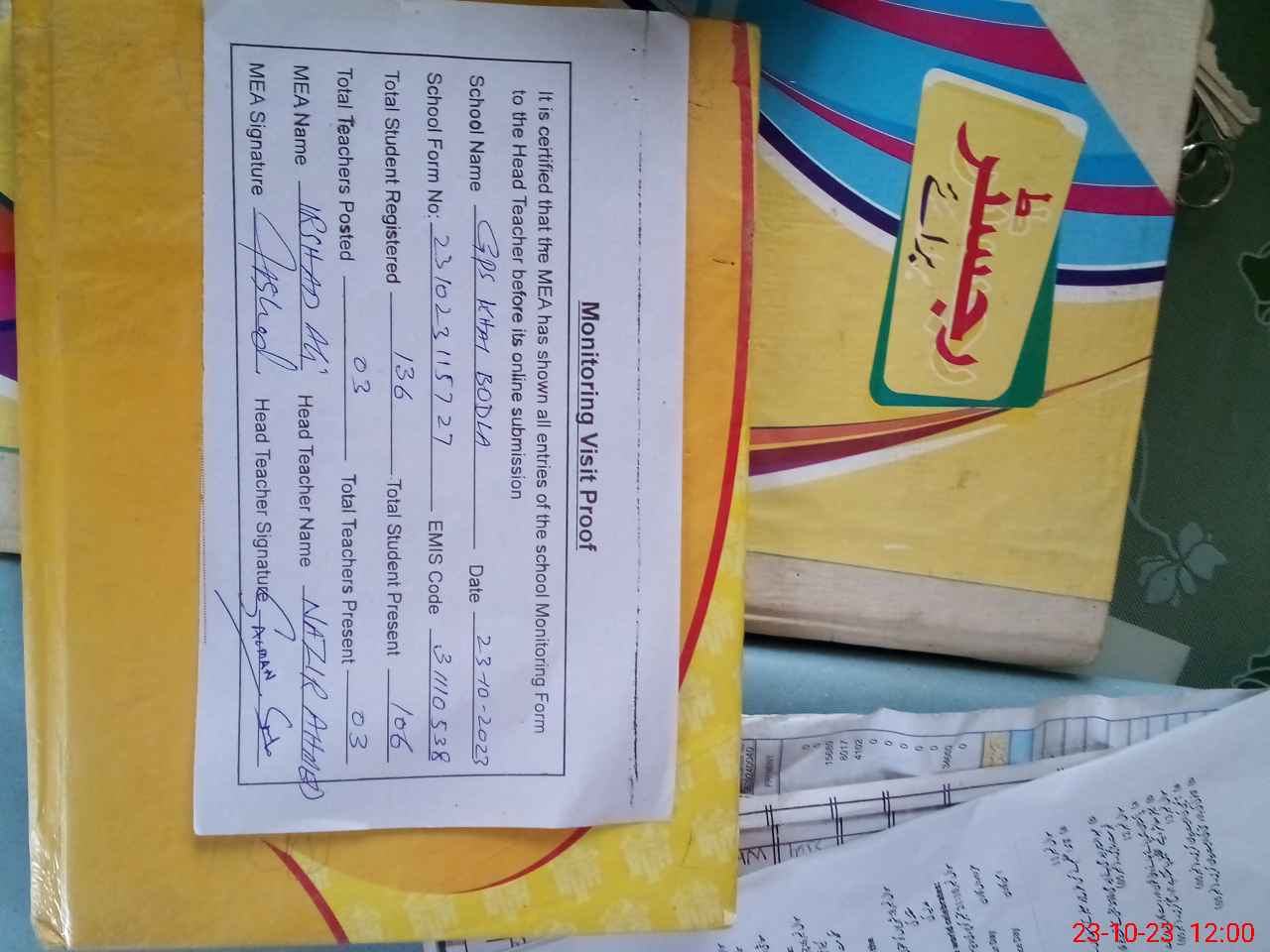 | EMIS Code: 31110538 | Name of School: GPS KHAI BODLA | |||