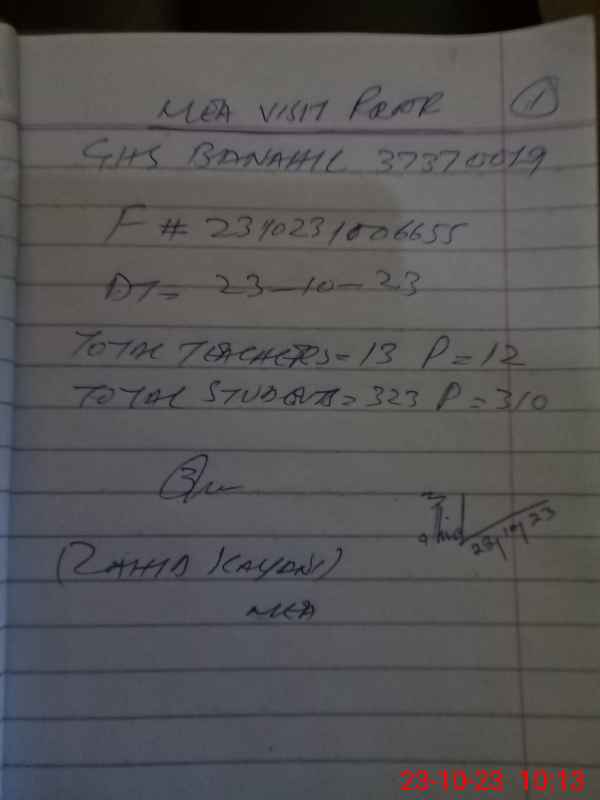 | EMIS Code: 37370019 | Name of School: GHS BANHAL | |||