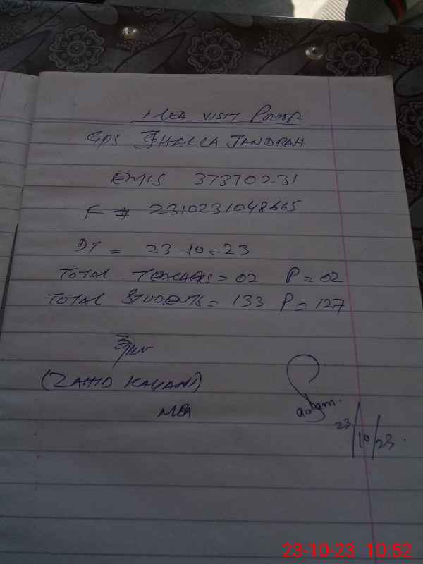 | EMIS Code: 37370231 | Name of School: GPS JHELLA JANDRAH | |||