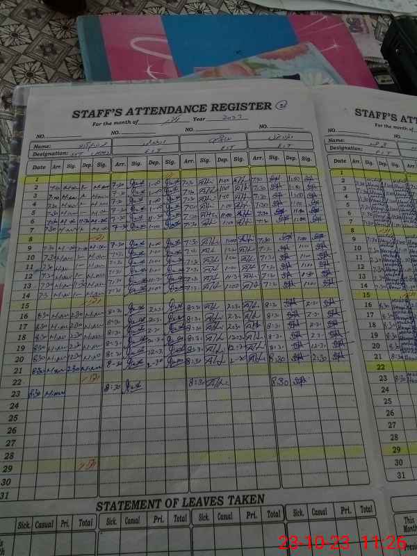 | CNIC | Full Name | Designation | R/C | Absence During Last Calender Month |