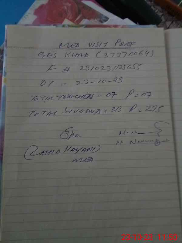 | Certified that this School was Inspected by the Undersigned MEA/DMO Today and the Information Stated Above is as Per Record. | |||||