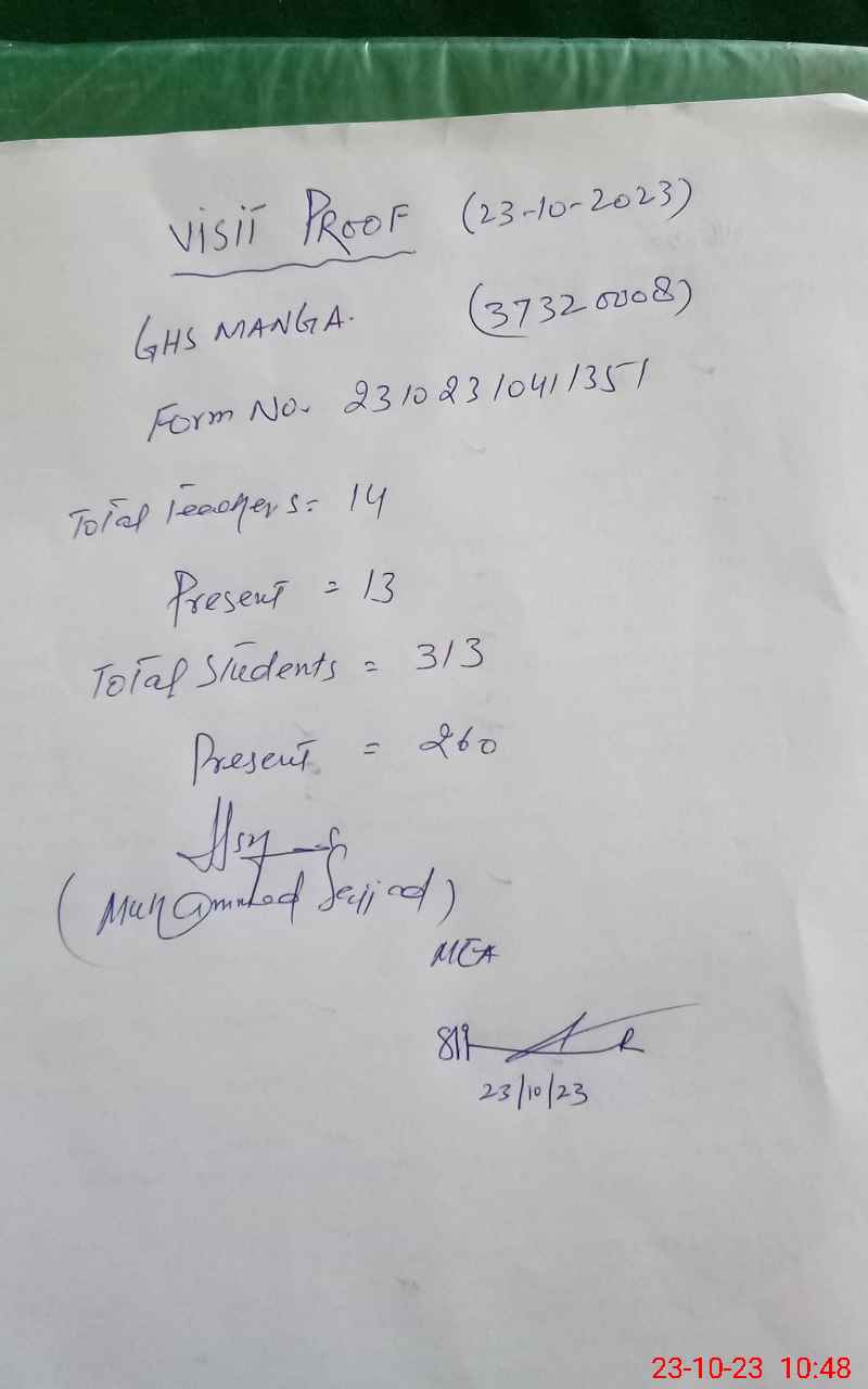 | Monitoring Date: 23-10-2023 | Start Time: 23-10-2023 10:11 AM | End Time: 23-10-2023 10:50 AM | Name of MEA: Mu**** Sa**** | |