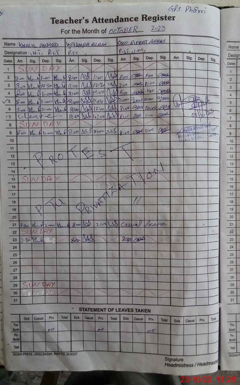 | Name: Kh**** Ah**** Designation: (School Headmaster's/Headmistress's) PST Phone/Cell Number: 03**** |
