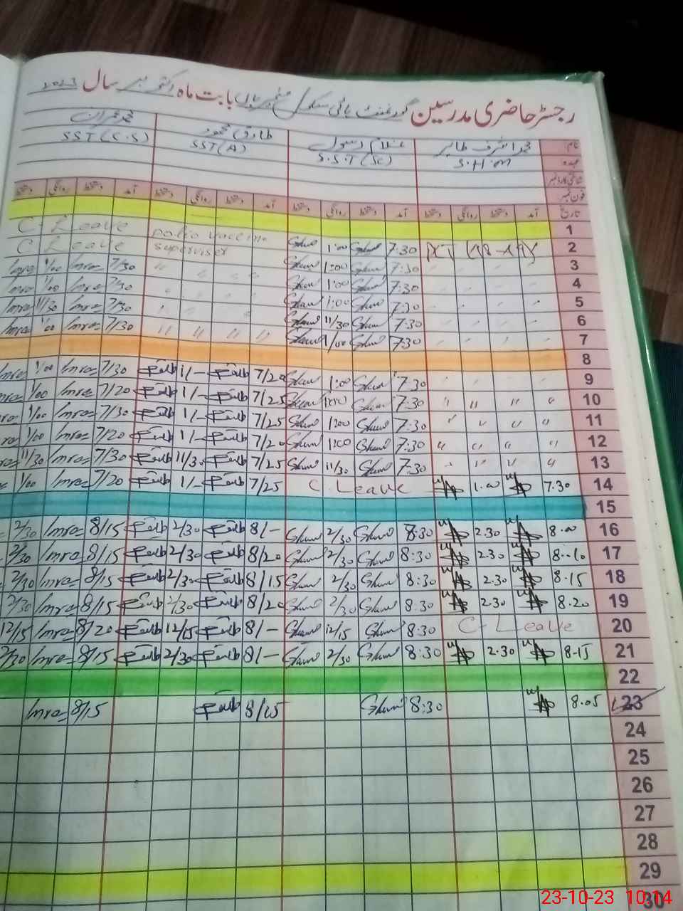 | CNIC | Full Name | Designation | R/C | Absence During Last Calender Month |
