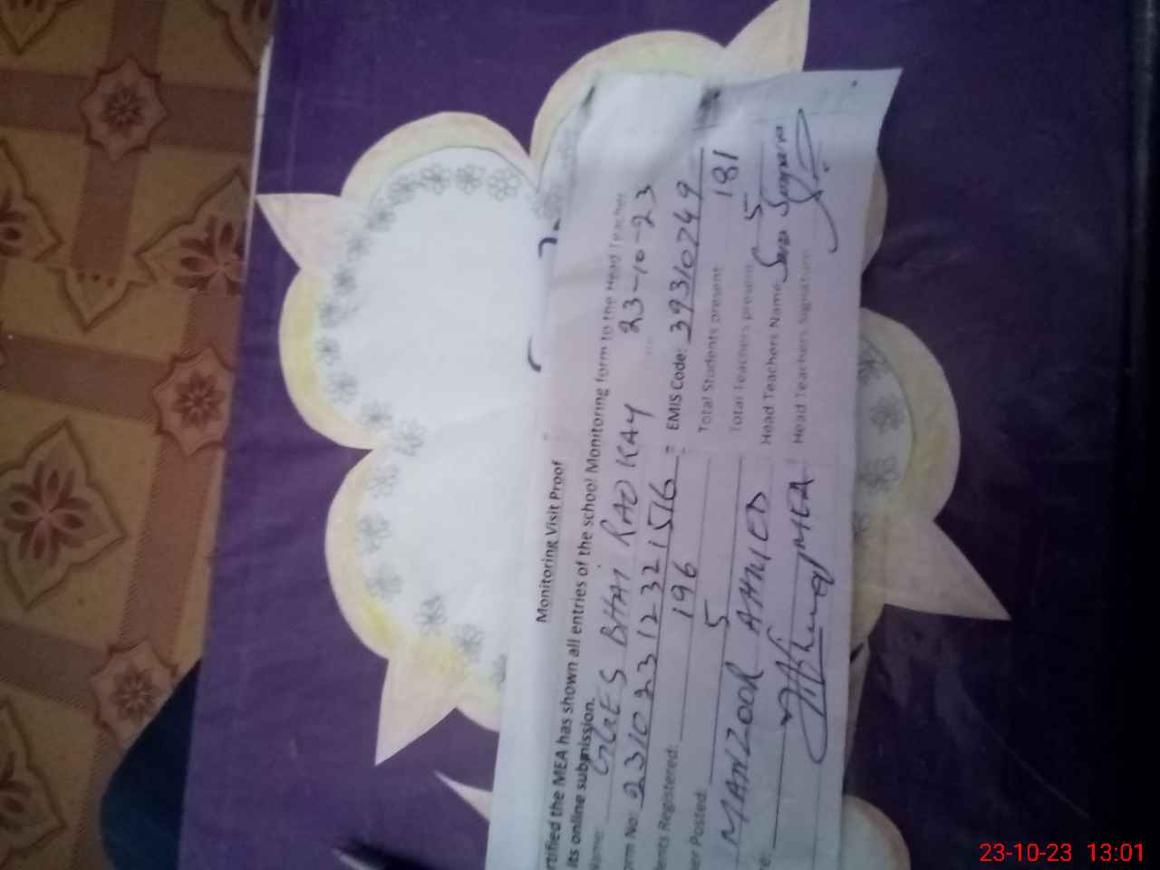 | Name: SA**** SU**** Designation: (School Headmaster's/Headmistress's) SSE Phone/Cell Number: 03**** |