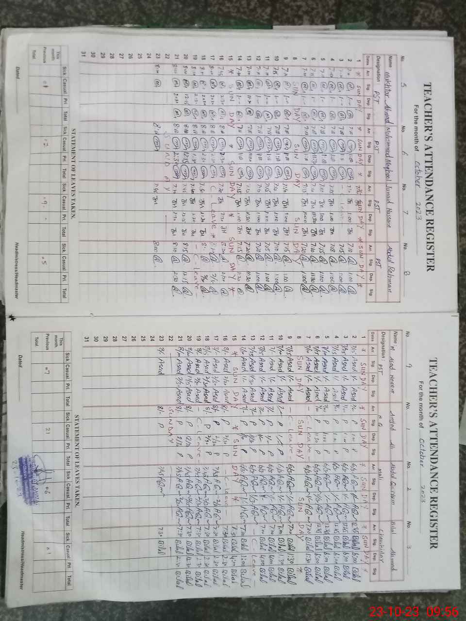 | CNIC | Full Name | Designation | R/C | Absence During Last Calender Month |