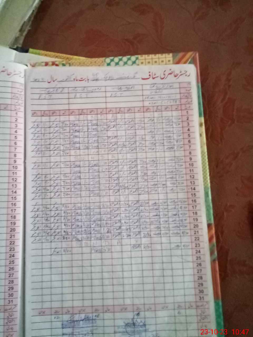 | CNIC | Full Name | Designation | R/C | Absence During Last Calender Month |