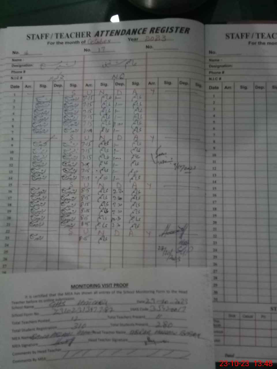 | Attendance Register | Head Teacher | MEA with School | Visit Proof |