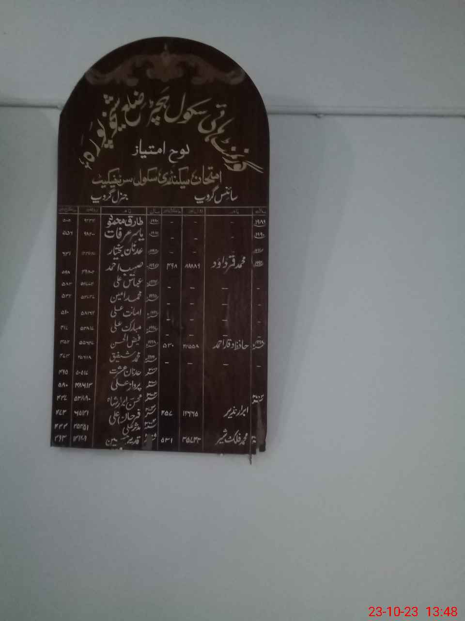 | District: SHEIKHUPURA | Tehsil: MURIDKE | Markaz: SECONDARY-WING | Level: High | |