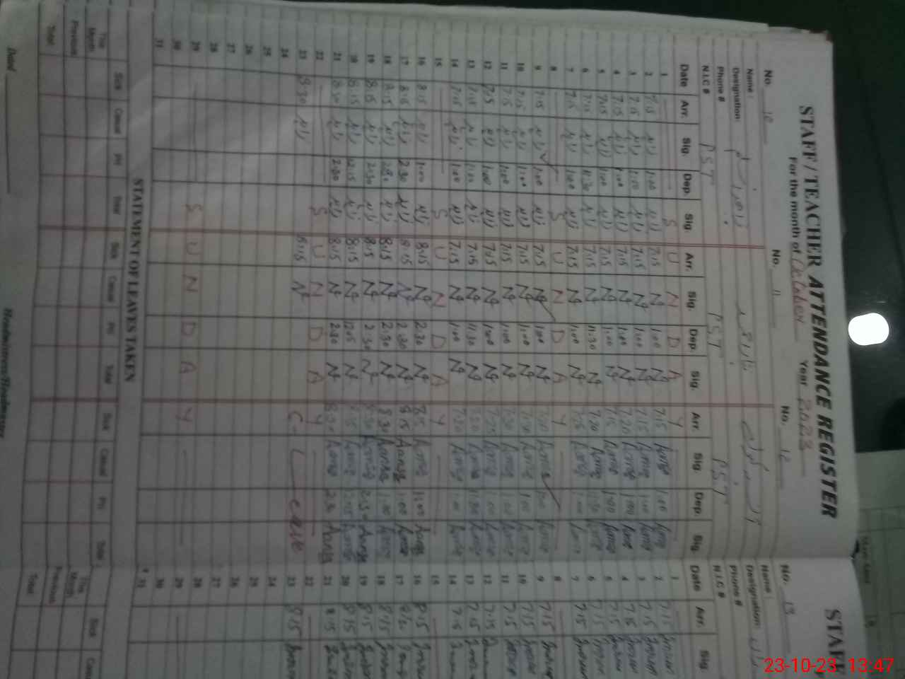 | CNIC | Full Name | Designation | R/C | Absence During Last Calender Month |