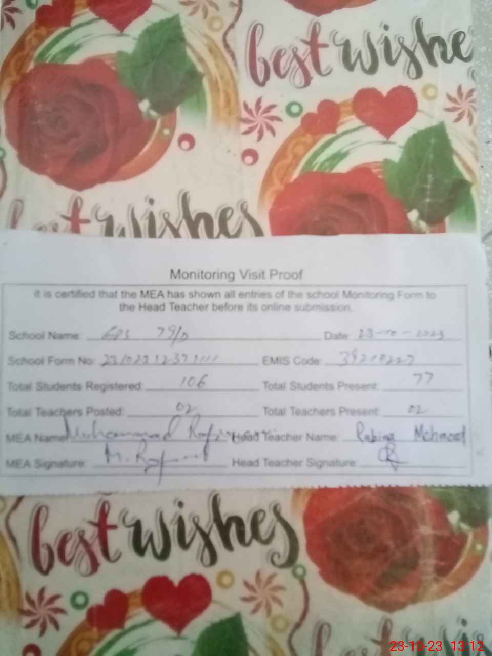 | Attendance Register | Head Teacher | MEA with School | Visit Proof |