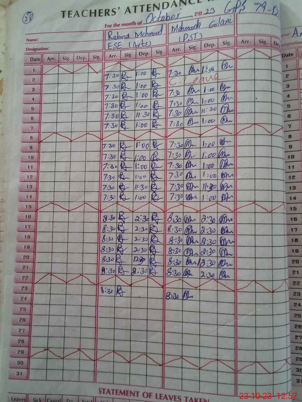 | Leave | Duty | Absent | Maternity | Medical | Ex- Pak |