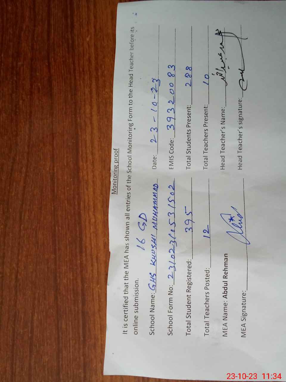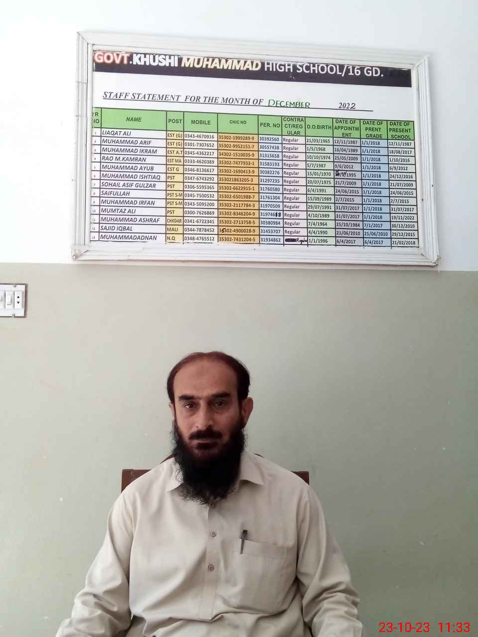 | EMIS Code: 39320083 | Name of School: GHS KHUSHI MUHAMMAD 16/GD | |||