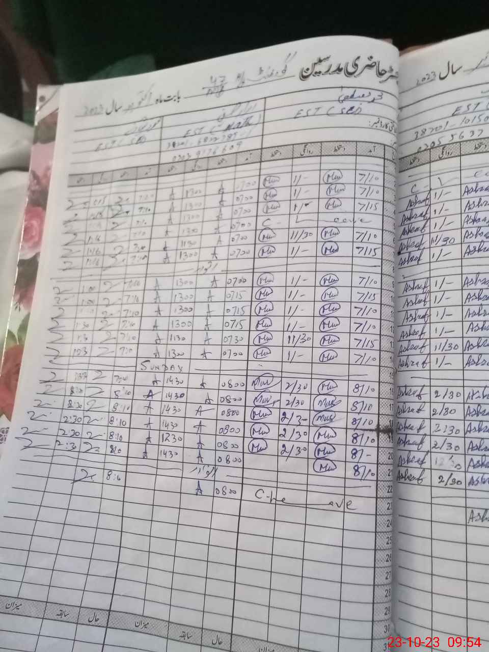| CNIC | Full Name | Designation | R/C | Absence During Last Calender Month |