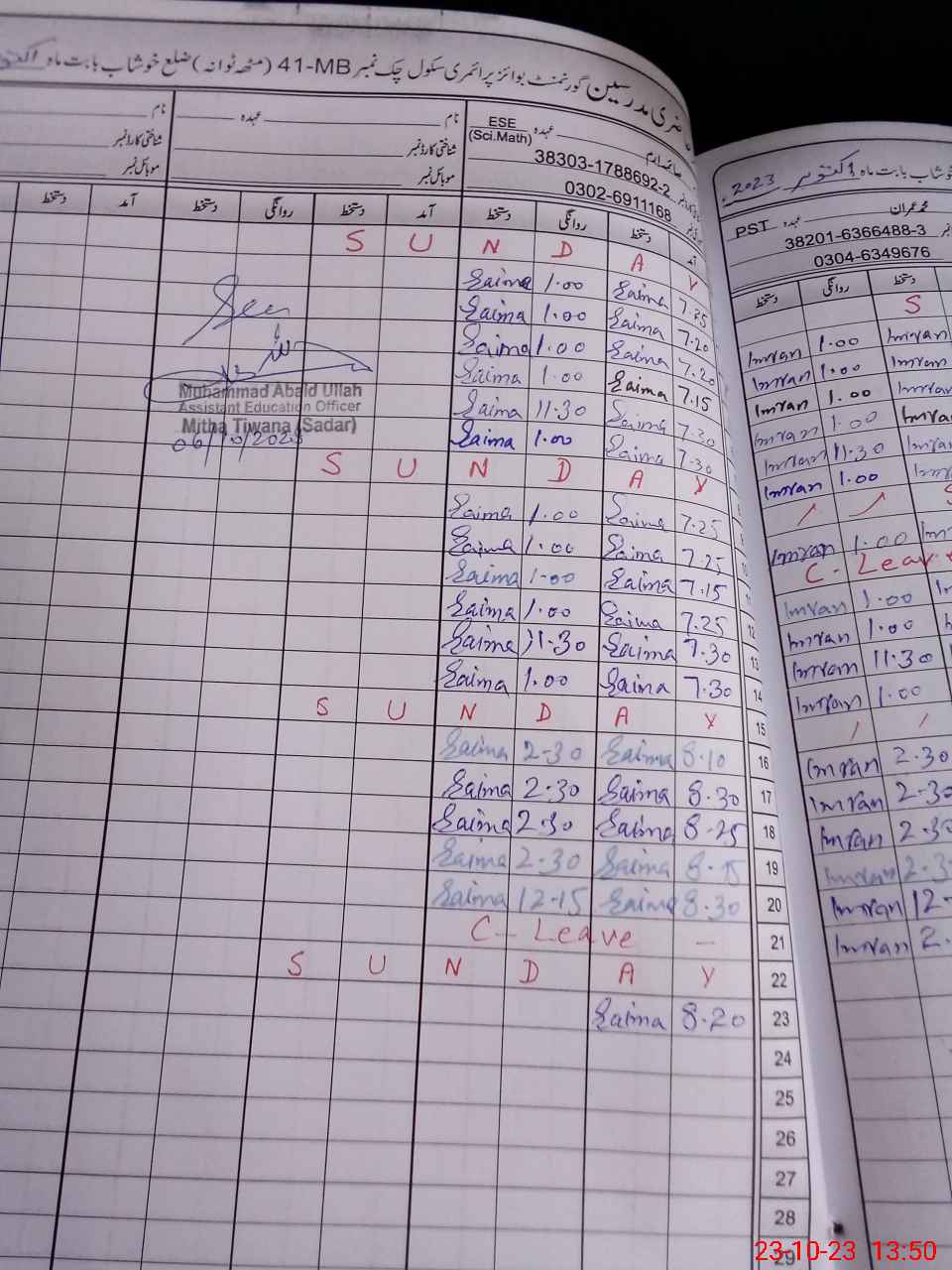 | Name: GH**** Sa**** Designation: (School Headmaster's/Headmistress's) PST/PTC/JV Phone/Cell Number: 03**** |