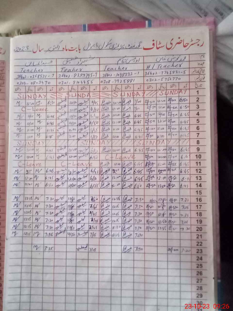 | Name: Mu**** Mo**** Kh**** Designation: (School Headmaster's/Headmistress's) PST Phone/Cell Number: 03**** |